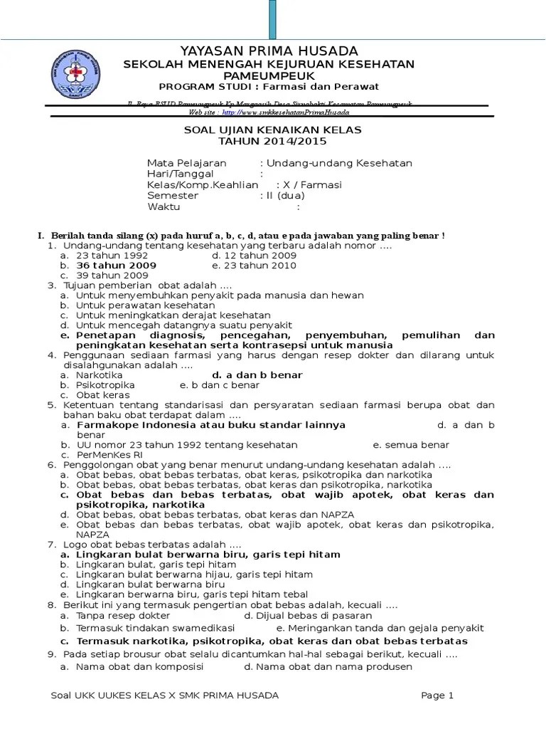 Praktik siswa smk jurusan farmasi industri fi 3112 tahun pelajaran 2018 2019. Soal farmasi soal ujian nasional 150 soal teori kejuruan smk . Proposal program kerja ujian praktik kejuruan kompetensi farmasi smk taruna farma. Ukk atau uji kompetensi keahlian tahun 2019 berdasarkan buku pedoman ukk 2019 akan. Contoh soal tes masuk smk jurusan farmasi yang bisa gunakan untuk soal soal.